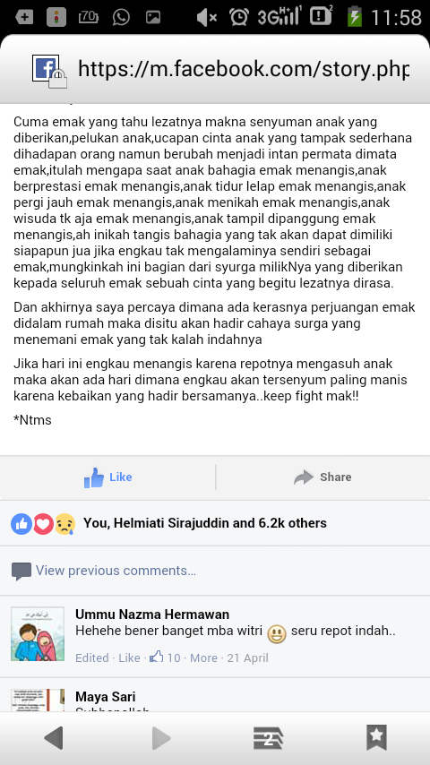 jika engkau tak mengalaminya sendiri sebagai Emak.Mungkinkah ini bagian dari syurga milik-Nya