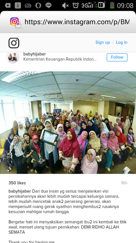 Meski postingan sehebat apa pun, pasti ada sisi kurang dari keluarga tersebut yang tidak ditampakkan. Postingan seburuk apa pun (mengeluh dst), pasti ada kebaikan yang mungkin sedang lupa diingat. Ambil baik-baiknya saja, jika ada yang jelek mari kita jadikan PR agar keluarga kita tidak begitu, jadikan bahan untuk diskusi dengan suami agar hal serupa tidak menimpa keluarga kita. Lalu kembali lagi ke tujuan hidup kita, apa iya hanya soal dunia? Jika kita telah mengontrol keinginan kita terhadap dunia, in sya Allah kita tidak akan tergoda dan baper. Ikut bahagia saja selama positif. Jangan lupa bahwa segala sesuatu akan dihisab, makin banyak harta maka makin panjang hisab kita nanti. Jangan salah, yang tampak indah di media sosial belum tentu di belakang tidak banyak masalah (mommy mencontohkan ada yang kesulitan membayar cicilan mobil mewah sampai harus pinjam uang ke teman). Ingin nyaman boleh, muslim yang kaya juga bisa memberi banyak manfaat. Tapi jangan jadikan sebagai tujuan hidup. Nah, kalau pencapaian akhirat, boleh kita baper. Jadikan sebagai motivasi.