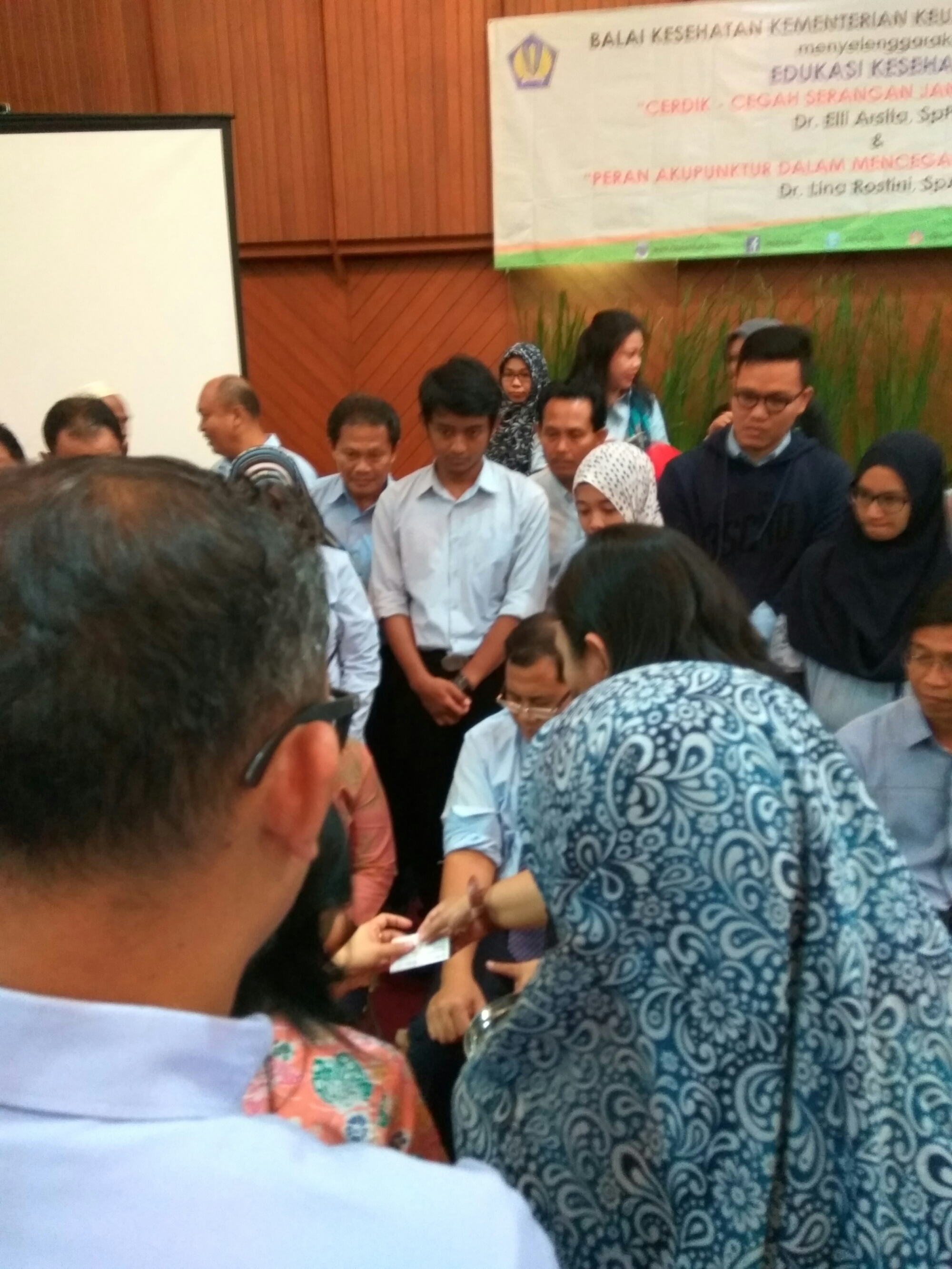 Sesi Peran Akupunktur dalam Mencegah Serangan Jantung Secara Dini ini menyambung bahasan sesi sebelumnya. Dalam acara yang diadakan oleh Balai Kesehatan Kementerian Keuangan bekerja sama dengan RSIA Tambak pada tanggal 8 Februari 2017 ini, dr. Lina Rostini, Sp.Ak. tidak hanya menyajikan presentasi tetapi juga langsung mencontohkan kegiatan senam limfatik dan gerakan akupunjktur sederhana yang dapat dilakukan di rumah sehari-hari. Beberapa peserta juga menjajal langsung akupunktur dengan jarum oleh dr. Lina di akhir acara.
