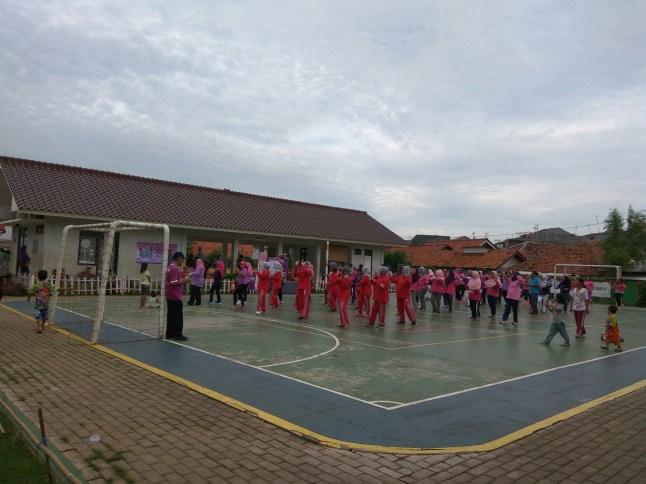Dari laman facebook inilah saya memperoleh informasi bahwa di dekat tempat tinggal saya juga akan dilaksanakan kompetisi senam Easy Gembira, tepatnya di RPTRA Utan Kayu Utara (Utakara) Beriman. Jadilah pada hari Sabtu tanggal 1 April lalu saya dan keluarga pergi ke sana, karena ingin tahu secara langsung bagaimana sih jalannya kampanye oleh Easy ini. Kami tiba di lokasi pagi-pagi dan ternyata sudah banyak ibu-ibu berkumpul, mayoritas mengenakan seragam yang didominasi oleh warna ungu dan pink. Acara dibuka dengan senam bersama keseluruhan peserta sekaligus sebagai pemanasan, baru dilanjutkan oleh penampilan dari masing-masing tim yang berkompetisi.