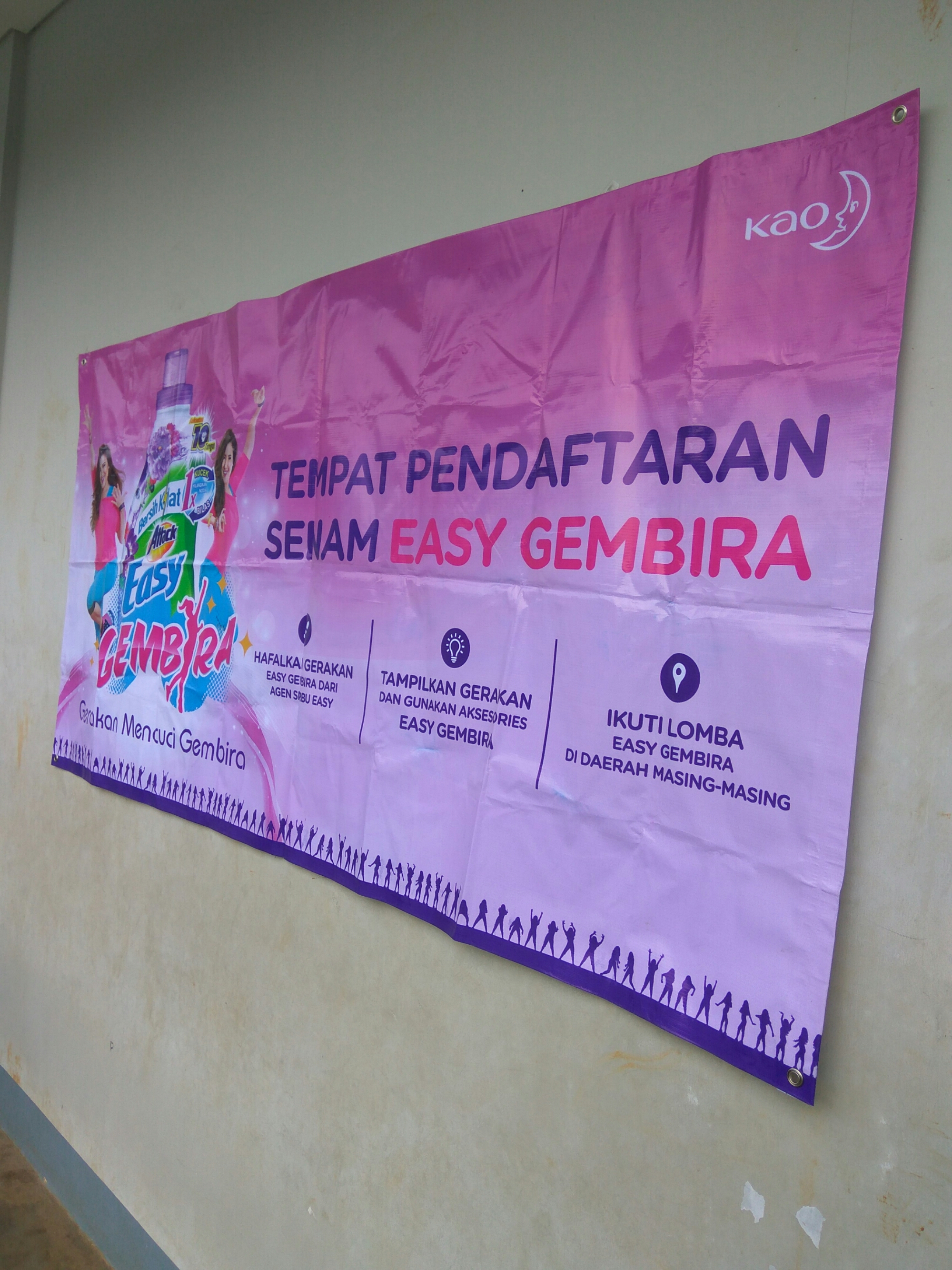 Cuaca mendung tak menghalangi serunya kampanye Easy Gembira hari itu. Bisa kelihatan kan ya betapa semangatnya para ibu mempraktikkan senam Easy Gembira, yang gerakannya antara lain memang mirip dengan kegiatan mencuci dan menjemur baju. Sesuai dengan salah satu kalimat dalam lagu yang mengiringinya, “Nyuci jadi enteng, kan ada Easy!” Kreatif yaa koreografernya.