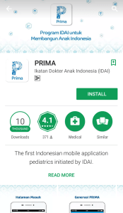 Tak cukup hanya di situ, tahun kemarin IDAI kemudian melangkah lebih jauh dengan meluncurkan aplikasi PRIMA (Program IDAI untuk Membangun Anak Indonesia). Tujuannya, untuk membantu memantau tumbuh kembang dan kesehatan anak-anak usia 0-18 tahun demi terwujudnya generasi prima. Aplikasinya tersedia dalam versi untuk dokter anak maupun orangtua/awam dan menggunakan platform android maupun iOS.