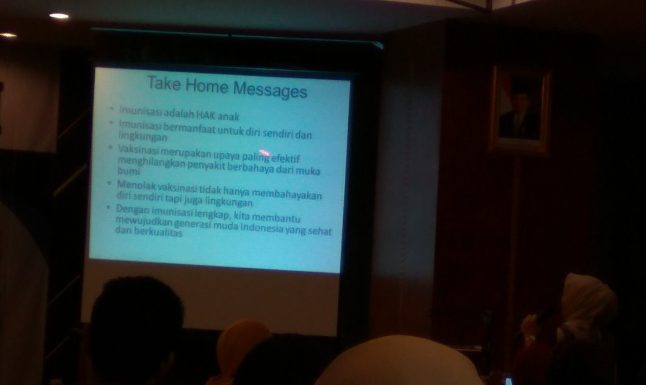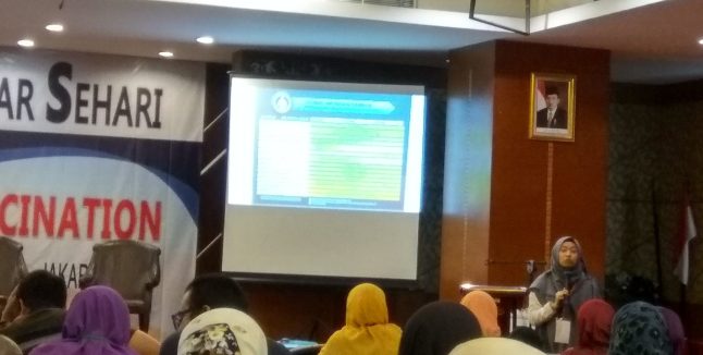 dr. Ferina yang juga aktif di grup facebook Gerakan Sadar Imunisasi (Gesamun) ini juga menampilkan data situasi imunisasi di Indonesia, di mana cakupannya masih belum begitu tinggi. Saat mengakhiri materi, beliau berpesan bahwa dengan memberikan imunisasi lengkap artinya kita membantu mewujudkan generasi muda Indonesia yang sehat dan berkualitas.