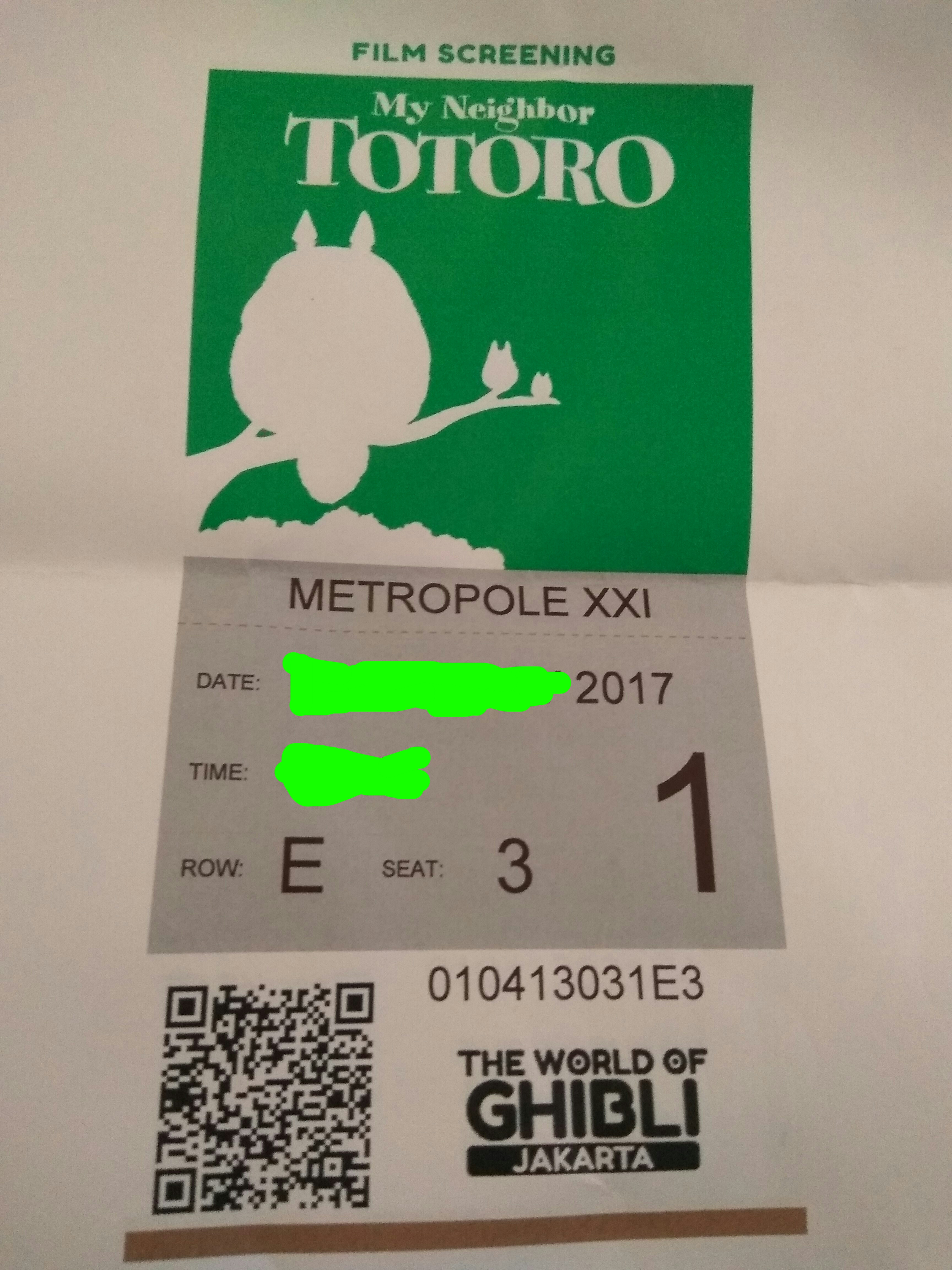 Saya bukan fans berat Studio Ghibli maupun Hayao Miyazaki (co-founder Ghibli yang juga bertindak antara lain selaku sutradara, produser, animator, dan penulis naskah), tetapi saya sempat menikmati film-filmnya di masa kuliah. Gara-garanya, para sepupu saya yang tinggal serumah waktu itu (lebih tepatnya saya yang ikut tinggal di rumah orangtua mereka, pakdhe dan budhe saya) suka film-film Ghibli. Saya tak sempat nonton semuanya sih, yang paling saya ingat saya saksikan sampai selesai adalah Ponyo on The Cliff by The Sea. Penasaran juga jadinya mau nonton My Neighbor Totoro. Jadi, ya, #NontonGhibli-lah saya dengan memesan tiket terlebih dahulu melalui situsnya. Sayangnya begitu sampai di lokasi kemudian, saya sudah tak kebagian kipas lucu Totoro yang sudah habis duluan.