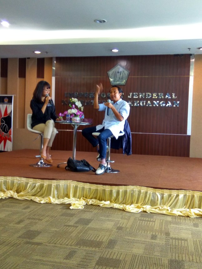 Hari ini Perpustakaan Kementerian Keuangan mengundang mas Iwan Setyawan, penulis buku 9 Summers 10 Autumns yang sudah difilmkan dan pendiri lembaga Provetic, dengan tema Jurus Jitu Eksis di Media Sosial. Berhubung tanggal 17 Mei adalah juga Hari Buku Nasional, mas Iwan mengawali uraiannya dengan menyebutkan bahwa anak muda yang keren sekarang sejatinya adalah anak muda yang berani duduk di kafe sendiri sambil membaca buku seperti buku Pramudya Ananta Toer, bukan yang keluar masuk mall. Di sini, budaya itu masih belum berjalan.