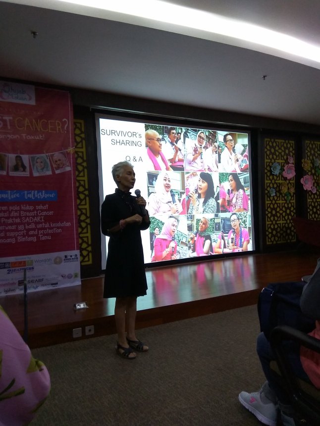 Pada bulan Oktober yang oleh Organisasi Kesehatan Dunia (WHO) diperingati sebagai Breast Cancer Awareness Month, saya ingin berbagi catatan yang belum sempat saya tuliskan sebelumnya. Tanggal 27 Agustus yang lalu saya mengikuti kegiatan seminar Hijab Motion Healthy Day di Prodia Tower. Topik utamanya memang membahas seputar kanker payudara. Selain ada materi dari segi medis, sejumlah survivor atau penyintas kanker payudara juga turut berbagi pengalaman.