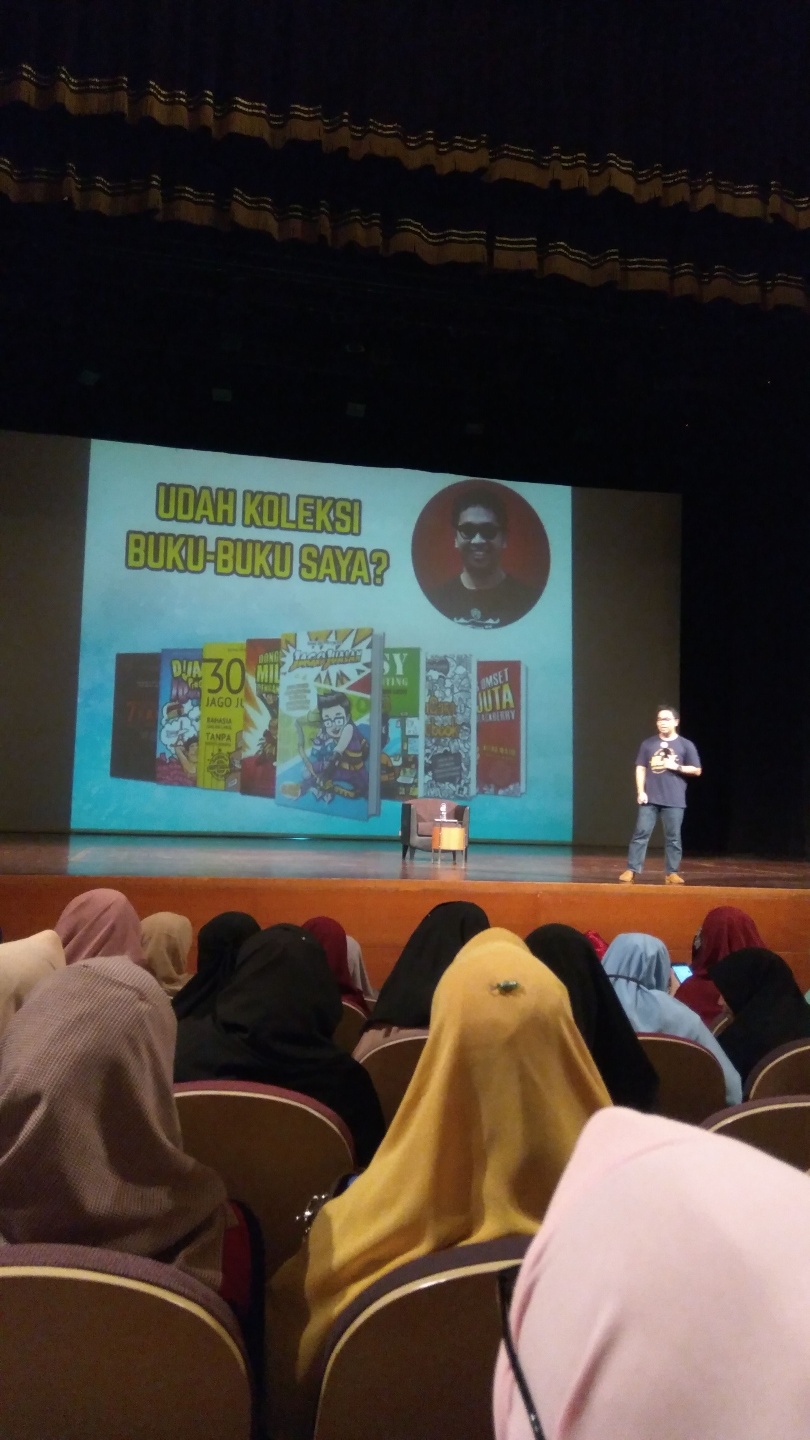 Kenapa harus laris? Kang Dewa melempar pertanyaan ini ke audiens dan dijawab dengan berbagai pernyataan tujuan. Agar bisa lebih banyak sedekah, bikin percetakan sendiri, bayar utang, biaya nikah, menginspirasi orang, dst, banyak alasannya. Kata kang Dewa, apa pun yang ingin dilakukan dalam menulis buku itu benar, yang salah adalah yang tidak menulis. Kemudian kang Dewa mengingatkan, “Kebermanfaatan buku itu tersalur ketika dibeli, bukan ketika jadi!” Bahkan dibeli pun tidak cukup, harus dibaca juga.