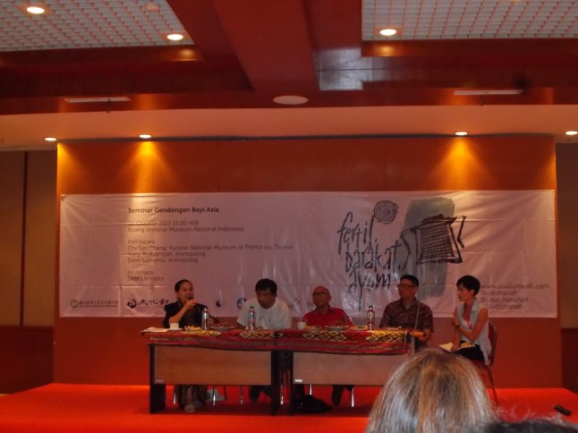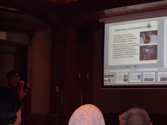 Selain dua pembicara dari Indonesia, seminar ini juga menghadirkan Chi-San Chang, Ph.D., kurator National Museum of Prehistory, Taiwan. Pak Chang, demikian bu Debra menyapa beliau, banyak menyajikan ragam gendongan yang dipakai oleh masyarakat Taiwan. Saat ini memang terjadi pergeseran budaya, di mana para ayah pun banyak terlihat aktif menggendong bayi. Sudah tersedia gendongan yang memudahkan para ayah menggendong dengan nyaman sekaligus terlihat gaya. Penelitian Barat belakangan ini turut memberikan dukungan terhadap budaya gendongan dengan menyatakan bahwa bayi yang digendong menggunakan gendongan menunjukkan kepuasan emosional yang lebih besar ketimbang yang dibawa dengan memakai kereta dorong (stroller). Bayi pun memperoleh manfaat bonding yang erat dengan orangtuanya, yang berpengaruh pula pada relasi anak tersebut nanti dengan orang-orang di masa mendatang.