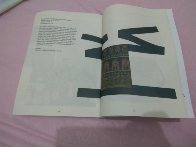 “Gendongan bayi juga merupakan item berharga pada beberapa kebudayaan, bahkan ada yang diperlakukan seperti pusaka. Di Papua, noken untuk bayi tentu beda dengan noken yang dipakai untuk membawa buah-buahan. Ia juga menjadi item penting untuk pesta tanam sagu yang sekaligus menyimbolkan kesuburan. Di Kaimana, gendongan harus dibuat dari kain tenun khusus dari Timor, persembahan keluarga suami kepada istri yang sedang mengandung. Gendongan bayi juga memperlihatkan status sosial tertentu, misalnya di suku Dayak Kenyah di Borneo. Pola tertentu hanya boleh dipakai oleh keluarga dari kelompok sosial tertentu,” urai pak Tony.