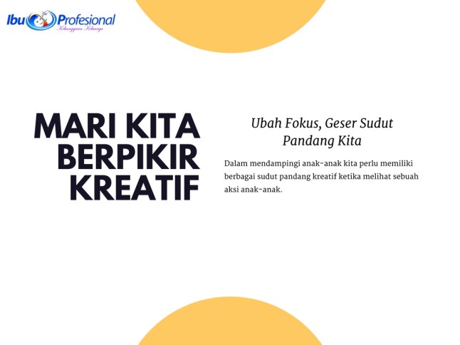 Apalagi di hari-hari awal tantangan, saya sedang banyak kerjaan di kantor sampai sering pulang malam. Sampai rumah suka sayang kalau buka hp alih-alih main dengan anak-anak, apalagi mama sedang ada di sini. Waktunya untuk bercengkrama, kan? Makin bingung saya, bagaimana memahami apa yang seharusnya dilakukan untuk tantangan Level 9 ini. Bahkan untuk mengikuti sesi diskusi bersama-sama (bukan pertanyaan yang insidental) pun kewalahan karena bersamaan waktunya dengan persiapan keberangkatan suami ke luar kota. Jelas saya memilih untuk menaruh ponsel dulu. Begitu baca keesokan harinya, waah, seru ya ternyata bahasannya. Banyak tantangan berpikir kreatif yang mengajak untuk melihat bukan hanya dengan sudut pandang yang selama ini dipakai.