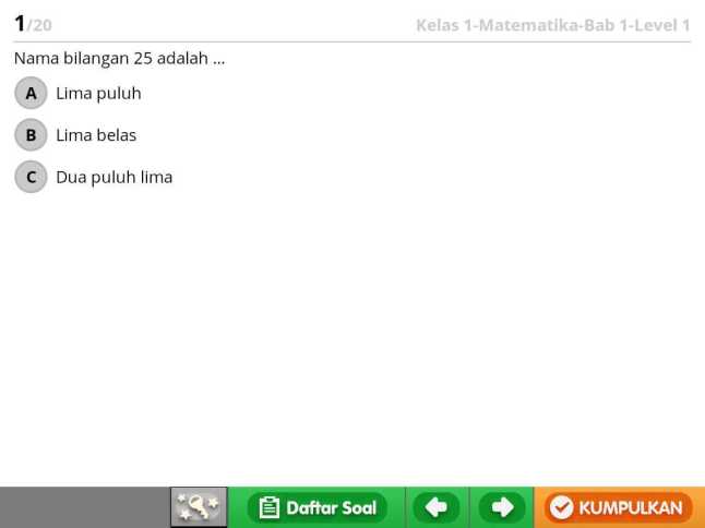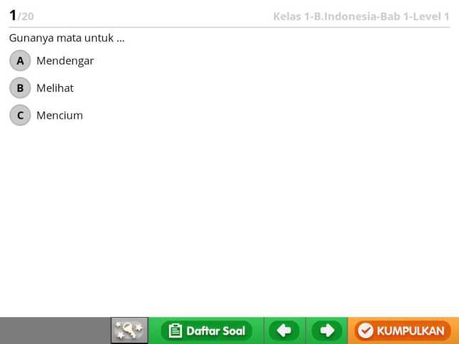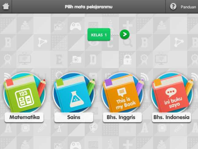 Jadi aplikasi ini menyediakan soal-soal latihan khususnya untuk anak SD kelas 1 s.d. 6. Sesuai kondisi Fathia yang in sya Allah tahun ini nanti masuk SD, saya masuk ke contoh soal kelas 1. Ada empat kategori mata pelajaran yang tersedia, yaitu Matematika, Sains, Bahasa Inggris, dan Bahasa Indonesia.