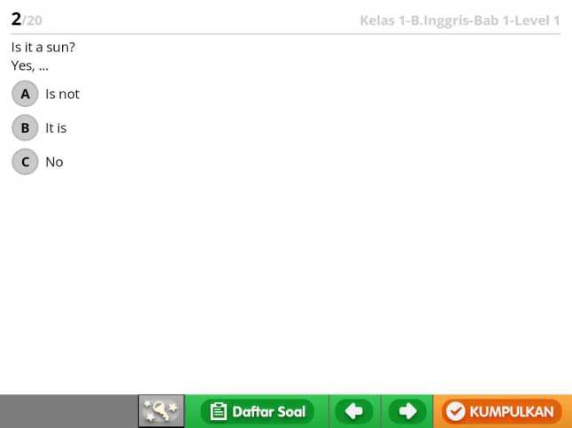 Jika semua soal telah dijawab, akan ada total skor yang menentukan apakah bisa naik atau lanjut ke paket pertanyaan selanjutnya. Untuk latihan dan gambaran bagi orangtua maupun anak, lumayan lah, ya. Tapi ya itu, saya takjub bahwa untuk kelas 1 SD pertanyaannya sudah seperti ini, khususnya yang English. Di luar bahasa Inggris pun, berarti memang anak dituntut untuk sudah bisa lancar membaca dulu, ya, begitu masuk jenjang Sekolah Dasar.