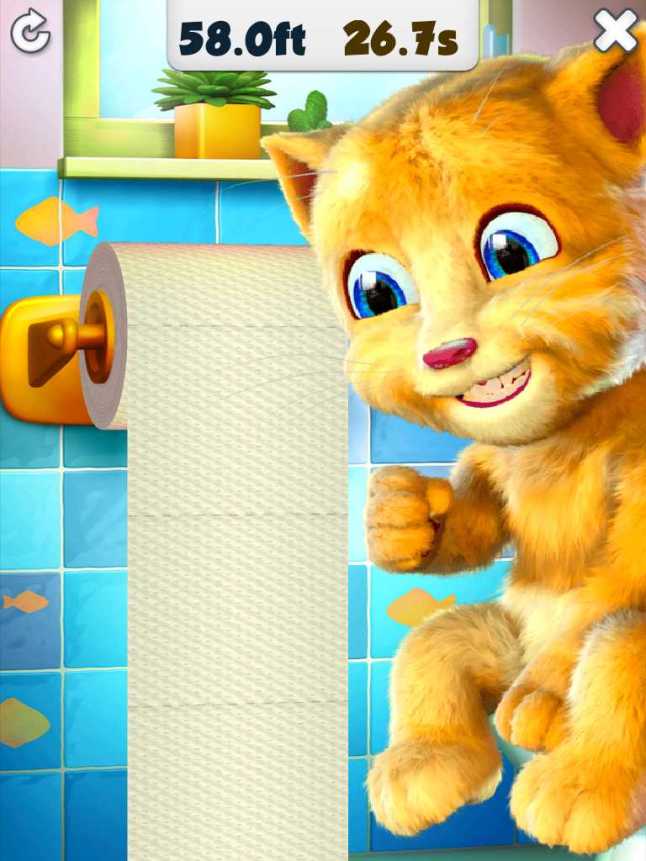 Ada satu lagi permainan yang juga masuk hitungan untuk membuka puzzle, yaitu menarik gulungan tisu toilet. Yang ini saya kurang suka sih, soalnya seperti menginspirasi anak-anak untuk main-main di kamar mandi dan menghabiskan barang yang harusnya bisa lebih bermanfaat. Kayak mubazir, gitu. Tapi di sisi lain, Talking Ginger cukup membantu untuk menyemangati Fathia sikat gigi. Ada semacam timer hitung mundur yang menayangkan adegan Ginger sikat gigi selama dua menit.