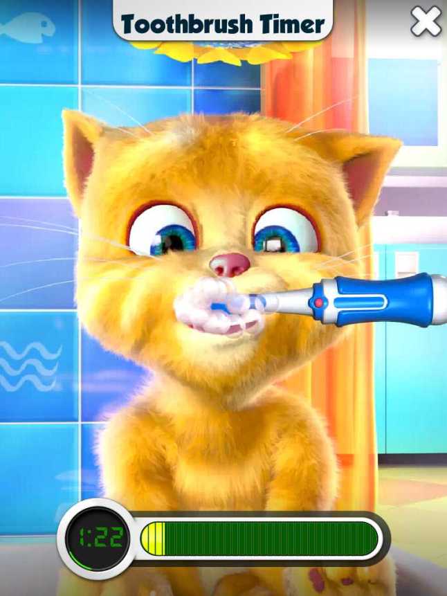 Talking Ginger menampilkan aktivitas di kamar mandi atau toilet. Ada juga Talking Ginger 2 yang bertema makan. Di Talking Ginger ada beberapa aktivitas seperti memandikan, mengeringkan, dan sikat gigi. Kalau sudah melakukan aktivitas tersebut selama beberapa kali, pemain bisa memperoleh akses ke beragam puzzle sederhana bergambar tokoh yang sama dengan aneka kegiatannya. Begitu terus selanjutnya sampai puzzle-puzzle berikutnya terbuka untuk dimainkan.