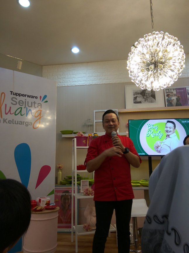 Rudy Choirudin, siapa sih yang tidak kenal nama chef terkemuka Indonesia ini? Jauh sebelum mereka yang disebut celebrity chef berseliweran di layar kaca, chef Rudy sudah rajin muncul membawakan acara-acara masak-memasak yang sukses bikin pemirsa jatuh cinta. Sabtu (17/02) lalu, akhirnya saya bisa melihat langsung aksi chef Rudy membawakan demo masak. Bukan hanya itu, dalam acara yang diselenggarakan di Tupperware Showroom South Quarter, SQ Dome, Jakarta Selatan ini, chef Rudy berbagi cuplikan kisah hidupnya.