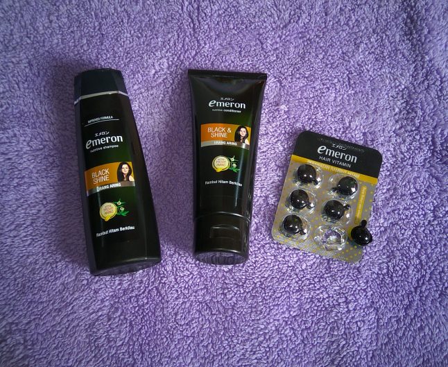 Pertama kali coba shampoo Emeron Black Shine ini, kesan pertama saya adalah wanginya yang lembut. Harum, tapi tidak mencolok. Tahan lama, pula. Setelah dibilas, kelembutannya pun tetap tertinggal. Sempat tergoda untuk tidak perlu memakai conditioner-nya karena merasa sudah cukup lembut, tapi demi hasil yang terbaik tetap saya gunakan. Sedangkan hair vitamin-nya ketika digunakan ternyata cepat meresap dan tidak lengket.