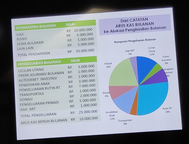 Mba Erlina menyebutkan bahwa prioritas setiap keluarga dalam mengelola keuangan bisa berbeda-beda, tergantung pada value yang dianut oleh masing-masing. Namun, secara ideal urutan prioritasnya adalah: