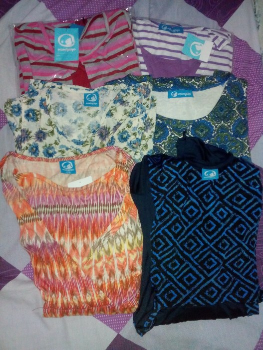 Aku dapet beberapa baju menyusui dan sukaaa hehehe. Asli awal ngelahirin kan suka bingung, banyak baju yang ga bisa kepake lagi karena kekecilan di bagian dadalah atau susah buat nyusuin. Baju menyusui is a lifesaver! 😀