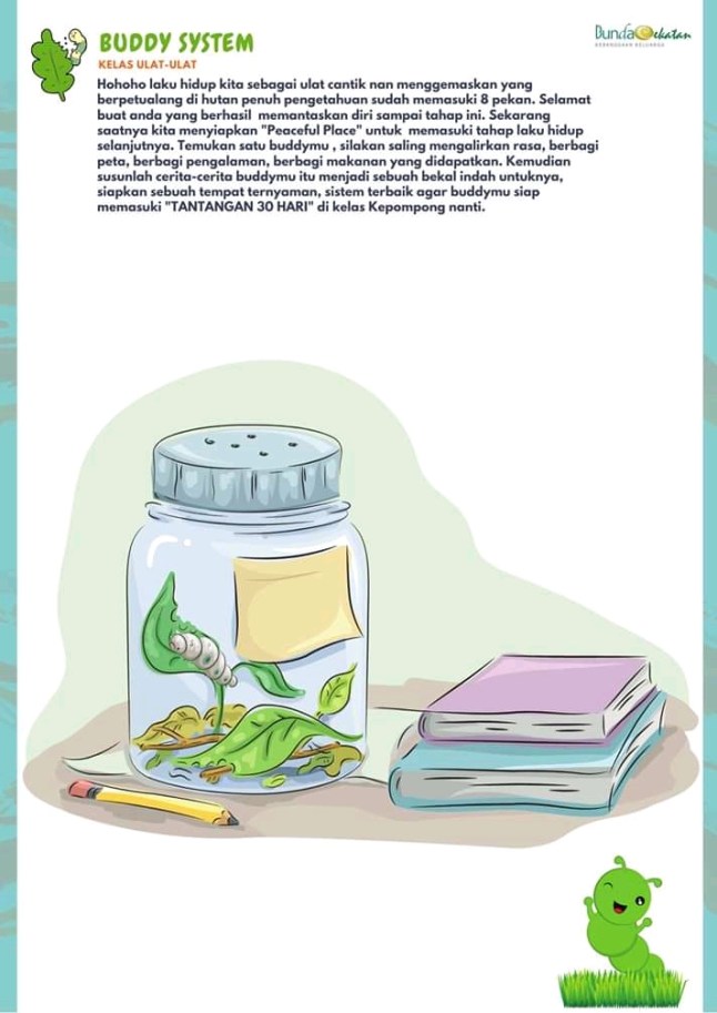“Saya menghindari hal tersebut karena tidak menyenangkan. Rupanya itu karena saya tidak tahu ilmunya dan memang tidak mencari ilmunya. Maka, di kelas ulat-ulat ini saya mencari makanan tersebut supaya dapat melakukan hal penting itu dengan bahagia,” katanya.