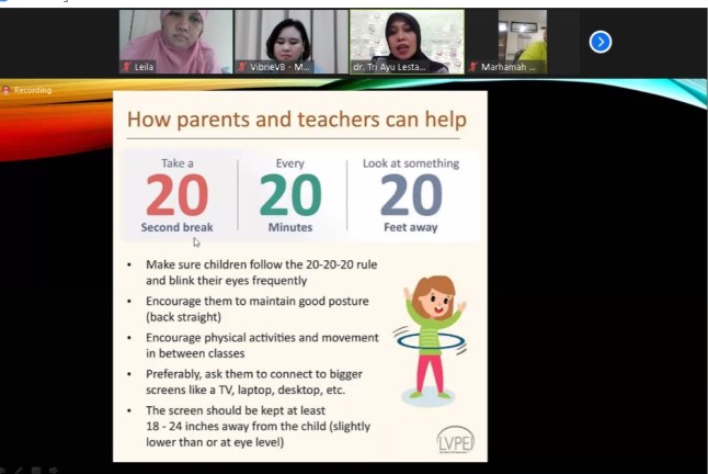 Wah, banyak sekali pengetahuan baru yang saya peroleh dari kegiatan ini. Semoga dengan bekal ilmu seputar mata anak ini, saya jadi lebih mudah beradaptasi dengan keharusan pemakaian gawai untuk kegiatan belajar anak, sekaligus menerapkan tips untuk menjaga kesehatan mata anak.