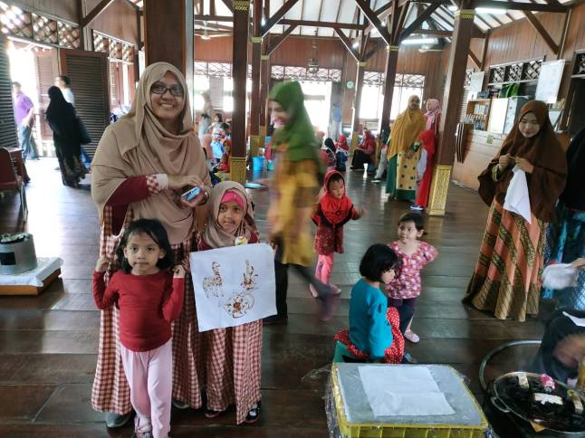 Fathia mengikuti proses membatik cap yang dimulai dari menekan cap yang telah tersedia ke kain putih agar bagian yang ditandai tertutupi oleh lapisan lilin, lalu kain tersebut dicelupkan ke pewarna. Anak-anak yang lebih besar bisa membatik dengan canting. Sambil menunggu hasil batiknya melalui proses pewarnaan dan pengeringan, peserta diajak berkeliling museum.