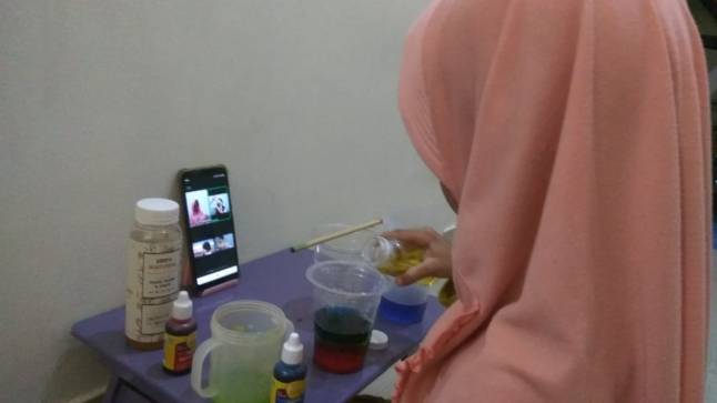 Acara daring menjadi pilihan saya untuk menambah variasi kegiatan anak-anak. Ada wisata virtual, kelas belajar mendongeng, bahasa Inggris, bernyanyi, menulis, prakarya, coding, webinar dengan topik pubertas hingga melindungi diri, juga ada aneka eksperimen menarik. Sebagian besar masih saya ambil yang lepasannya saja, belum sampai yang berpekan-pekan rutin diadakan, karena jadwal pelajaran anak-anak juga masih sering berubah khususnya pada saat-saat adaptasi di awal pandemi dulu.