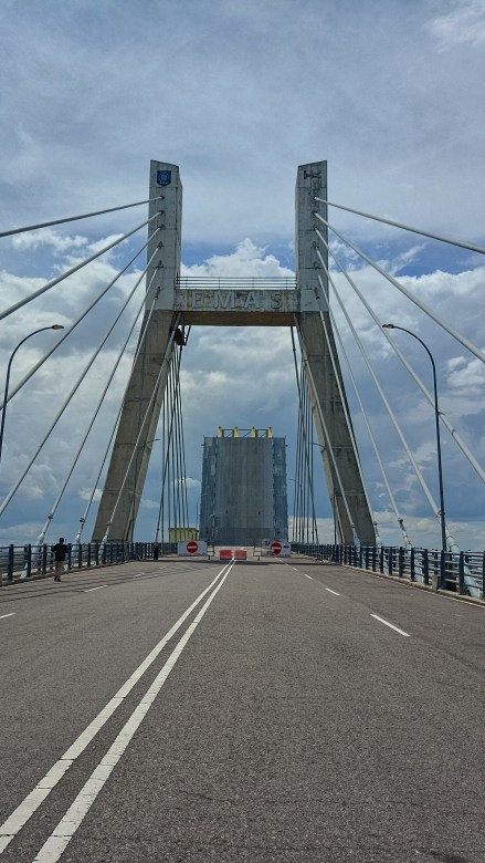 Belasan tahun tidak menginjakkan kaki di Bumi Serumpun Sebalai, tentu banyak sekali kemajuan yang saya saksikan ketika kembali ke sana. Salah satunya adalah Jembatan Emas yang sepertinya baru pada tahap pembangunan awal ketika saya pindah dari sana. Jembatan ini memilik keunikan dapat digerakkan naik-turun agar kapal besar dapat lewat, sekaligus tetap dapat dimanfaatkan untuk lalu lintas kendaraan saat sedang tidak diangkat.