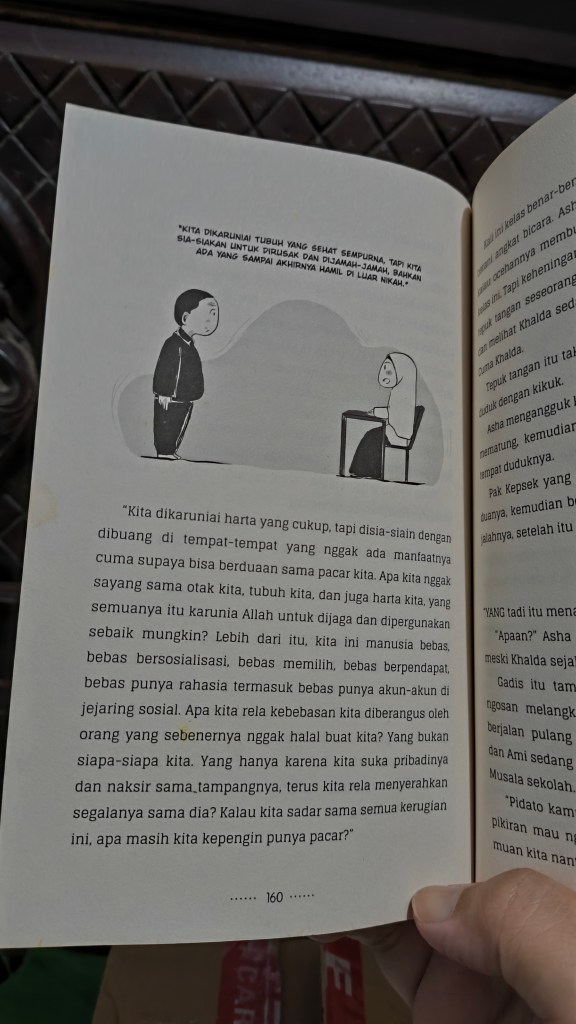 Sepertinya ini masuk kategori novel santun dan aman banget dibaca remaja-remaja perempuan. Boleh ini jadi rekomendasi untuk ponakan-ponakan. Memang soal bacaan ortu juga harus rajin memilah dan memilih, tak dipungkiri beberapa novel terkadang mengandung adegan vulgar. Ujung-ujungnya ortu harus rajin baca berarti ya 😀