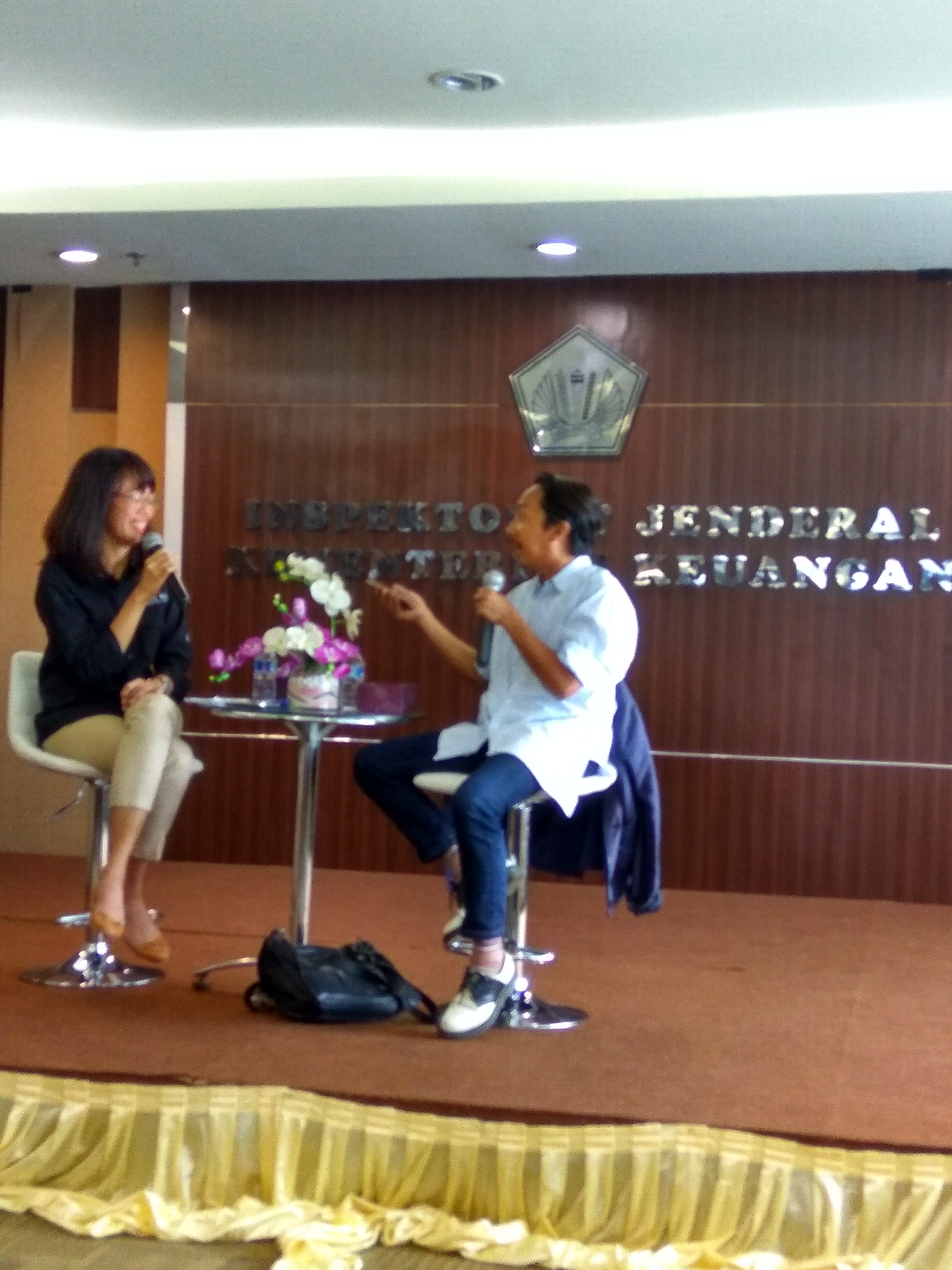 Hari ini Perpustakaan Kementerian Keuangan mengundang mas Iwan Setyawan, penulis buku 9 Summers 10 Autumns yang sudah difilmkan dan pendiri lembaga Provetic, dengan tema Jurus Jitu Eksis di Media Sosial. Berhubung tanggal 17 Mei adalah juga Hari Buku Nasional, mas Iwan mengawali uraiannya dengan menyebutkan bahwa anak muda yang keren sekarang sejatinya adalah anak muda yang berani duduk di kafe sendiri sambil membaca buku seperti buku Pramudya Ananta Toer, bukan yang keluar masuk mall. Di sini, budaya itu masih belum berjalan.