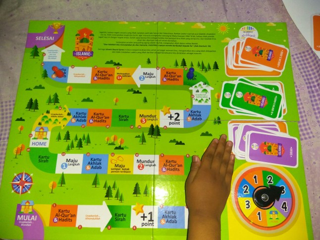 Prinsipnya mirip seperti permainan ular tangga memang, tapi dengan konten Islami yang mengasah pemahaman kita tentang ketentuan-ketentuan dalam Islam. Ada kartu pertanyaan yang dibagi dalam tiga tema: Al Qur’an dan Hadits, Akhlak dan Adab, serta Sirah. Belakangan dibuat juga kartu tema lain, yaitu yang terkait tema Haji dan Qurban.