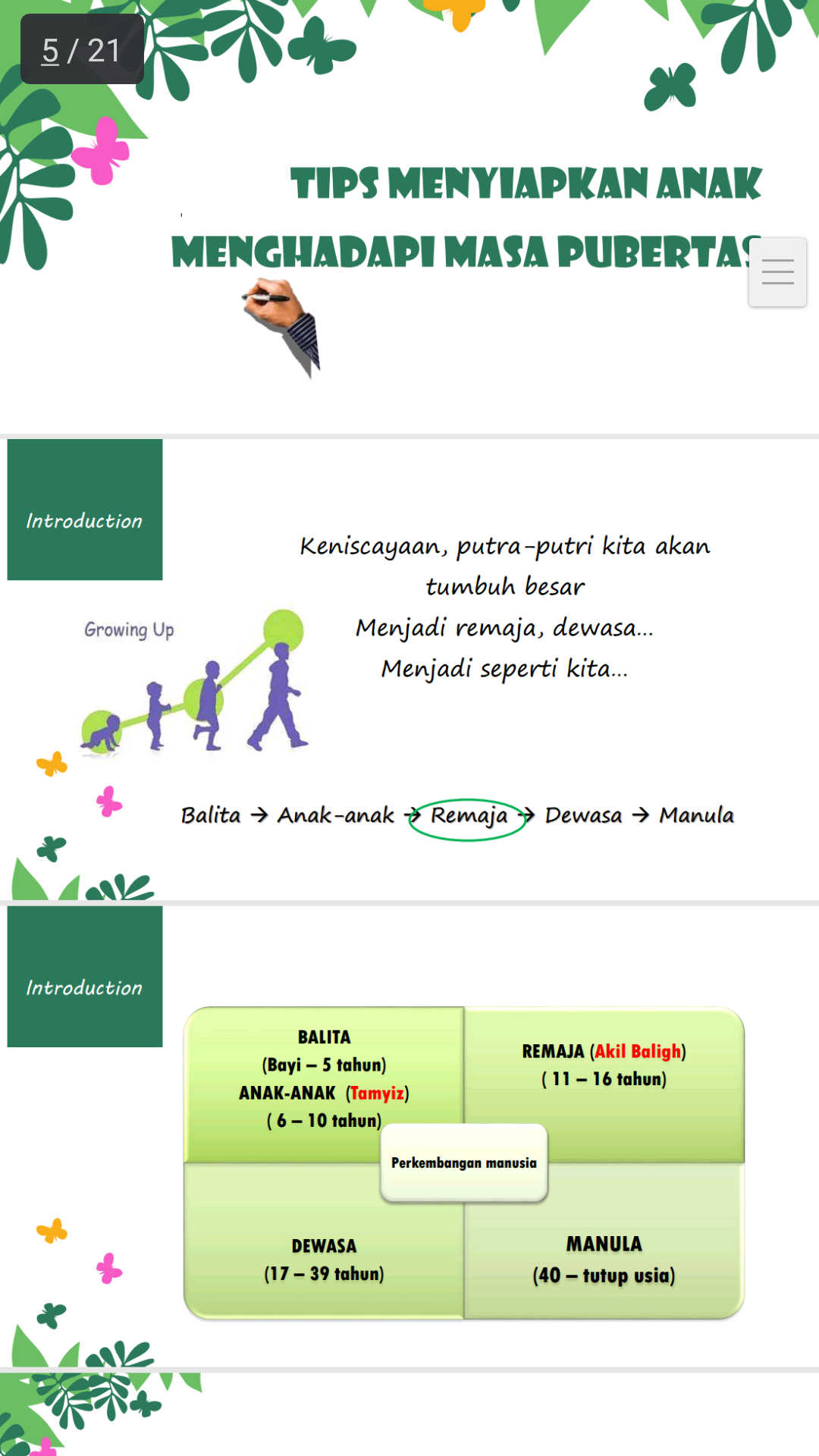 Memasuki usia puber tandanya anak sudah mulai memasuki usia remaja. Anak-anak berubah dari makhluk aseksual menjadi makhluk seksual. Dari anak mumayyiz menjadi remaja yang akil baligh.